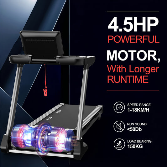 CharonFit T600 Laufband für Zuhause Klappbar mit 18-stufige Automatische Steigung bis 18km/h: 4.5-PS-Motor, 150KG Tragfähigkeit, App kompatibel
