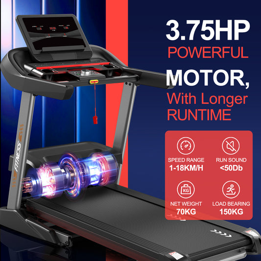 CharonFit T600 Laufband für Zuhause Klappbar mit 18-stufige Automatische Steigung bis 18km/h: 4.5-PS-Motor, 150KG Tragfähigkeit, App kompatibel