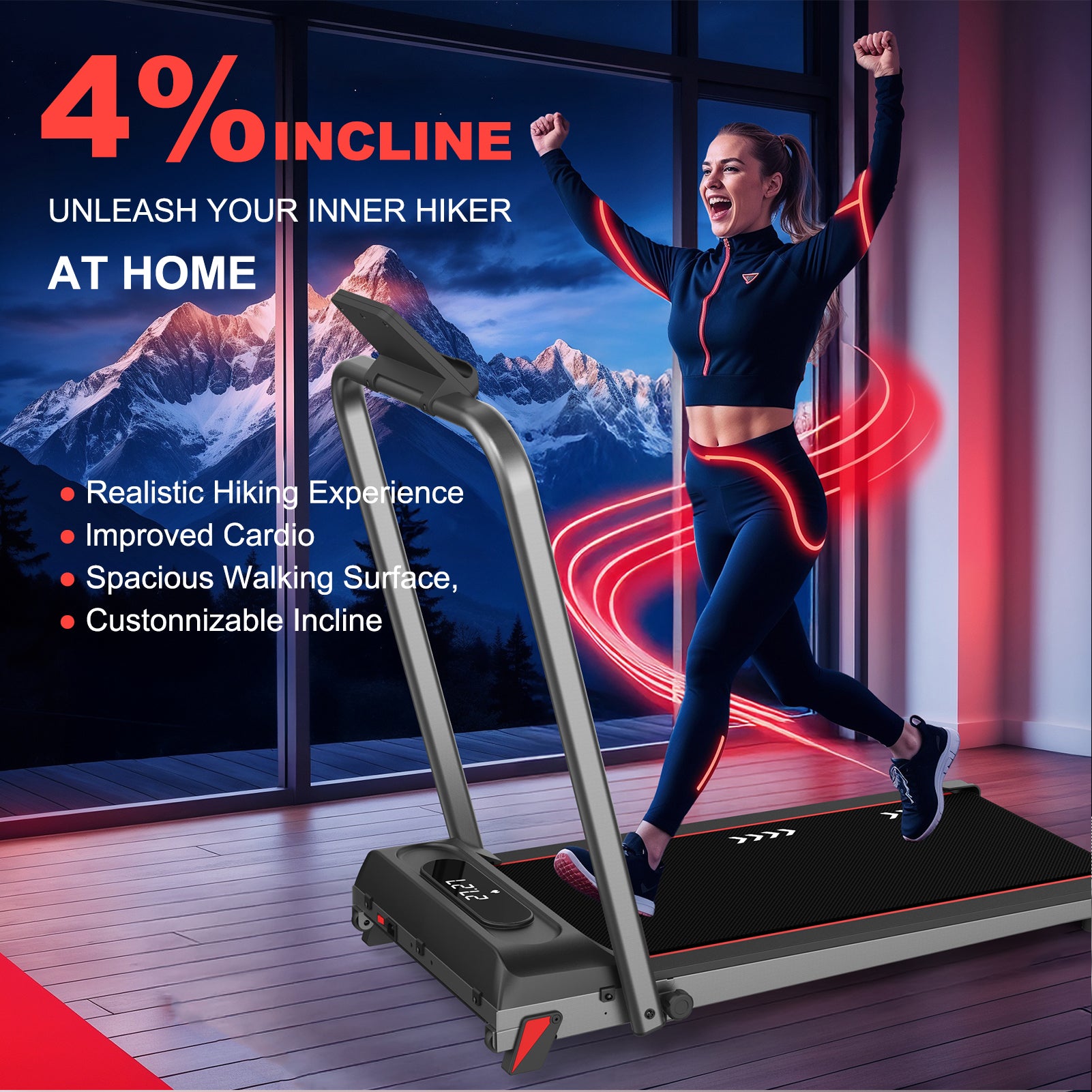 - 4% STEIGUNG-FEATURE: Das 4% Steigung design bietet ein realistisches Gehserlebnis und verbessert die Herz-Kreislauf-Fitness. Sie können die Schrägstellung nach Ihren Trainingsbedürfnissen einstellen und die Vorteile des Gehens oder Laufen auf einem Hügel genießen, ohne das Zuhause zu verlassen.