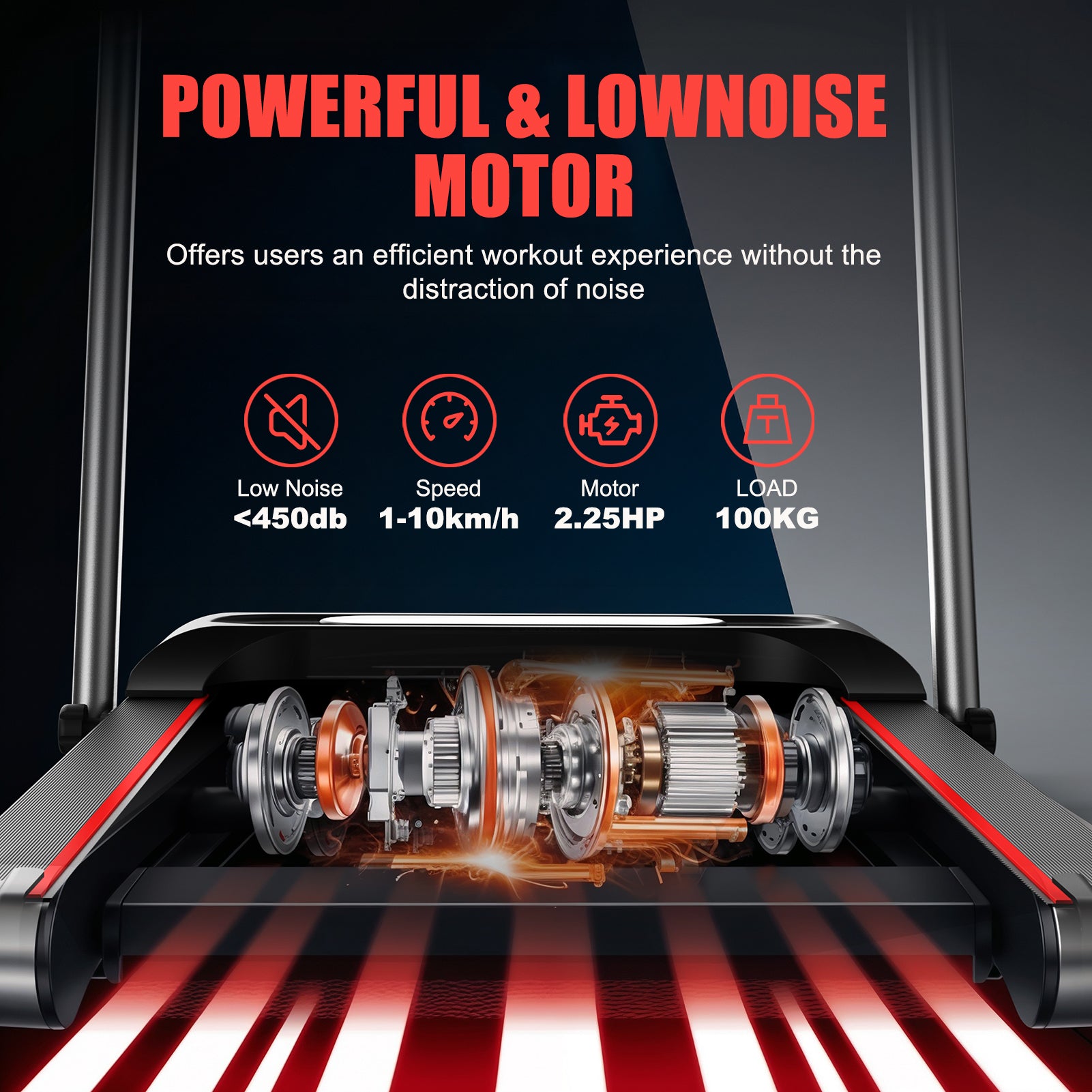 - STARKER MOTOR UND HALTBAUER BAU: Ausgerüstet mit einem 2,25 PS-Motor, der eine konstante und zuverlässige Leistung gewährleistet. Das präzise hergestellte Band läuft reibungslos, bietet einen leisen Betrieb und minimale Vibrationen. Der robuste Stahlrahmen kann bis zu 100 kg tragen und widersteht den Ansprüchen des täglichen Trainings über Jahre hinweg.